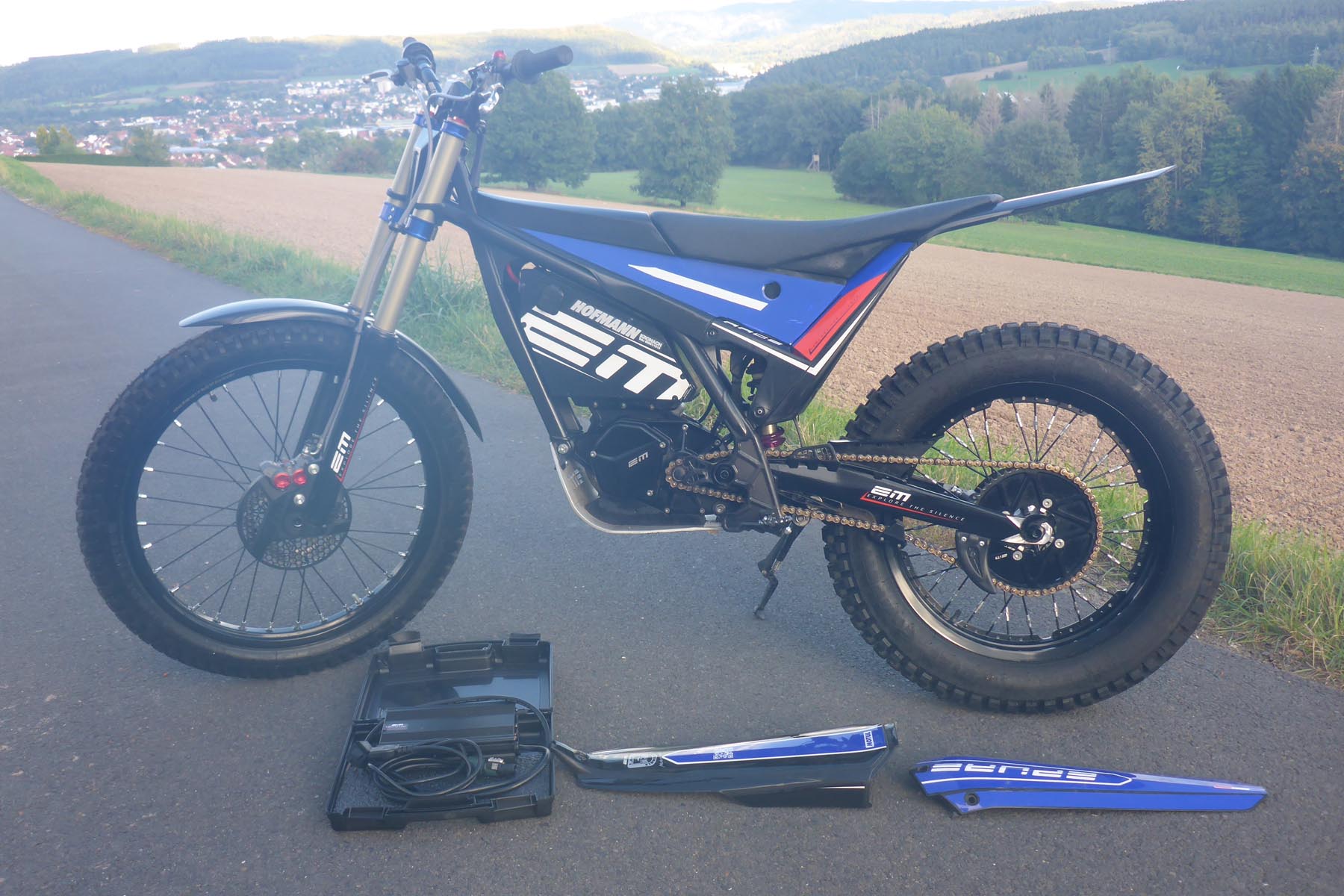 Elektro Kinder Trial Motorrad, mit einer digitalen Akkuanzeige nachgerüstet.